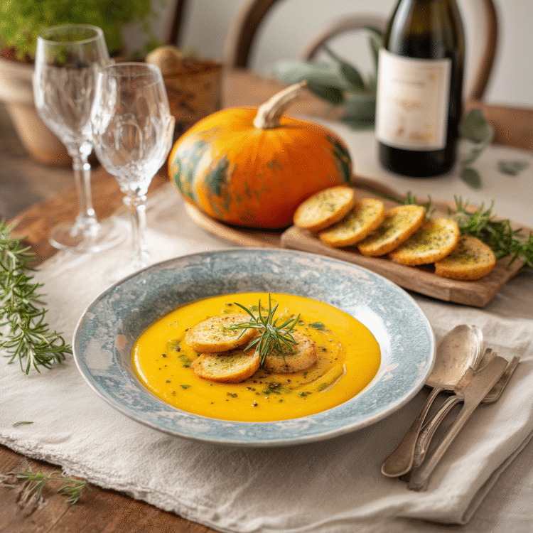 It all began with a bit of kitchen improvisation — a leftover roast chicken and a small pumpkin resting on the counter. A quick blend of pantry staples later, and the first batch of this golden-hued soup was born. Over time, it evolved into a family classic — rich, silky, and gently spiced — the kind of recipe that turns an ordinary night into something memorable.