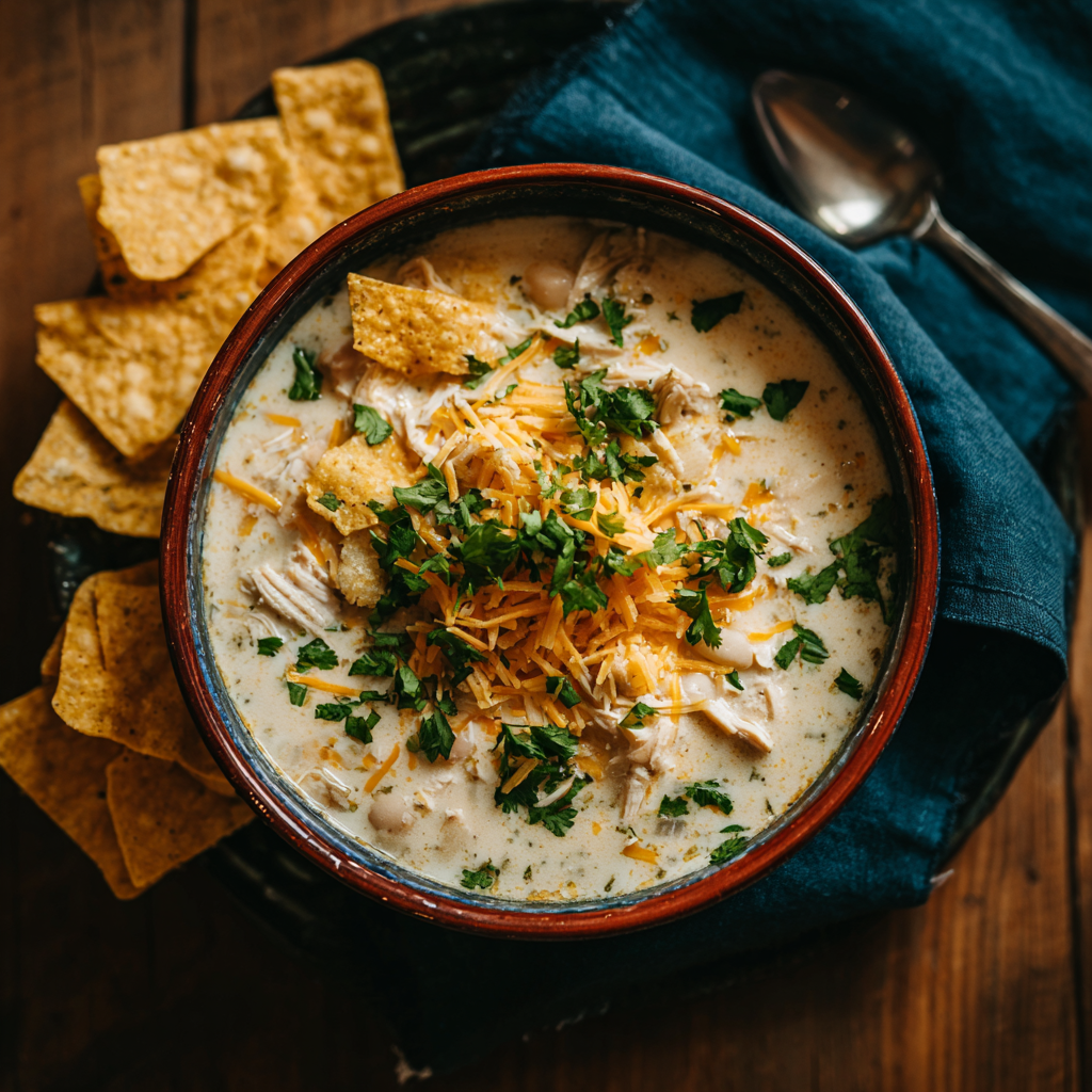 kcalA creamy, hearty, and mildly spicy White Chicken Chili made with tender shredded chicken, white beans, and green chilies — the ultimate cozy meal for chilly nights.