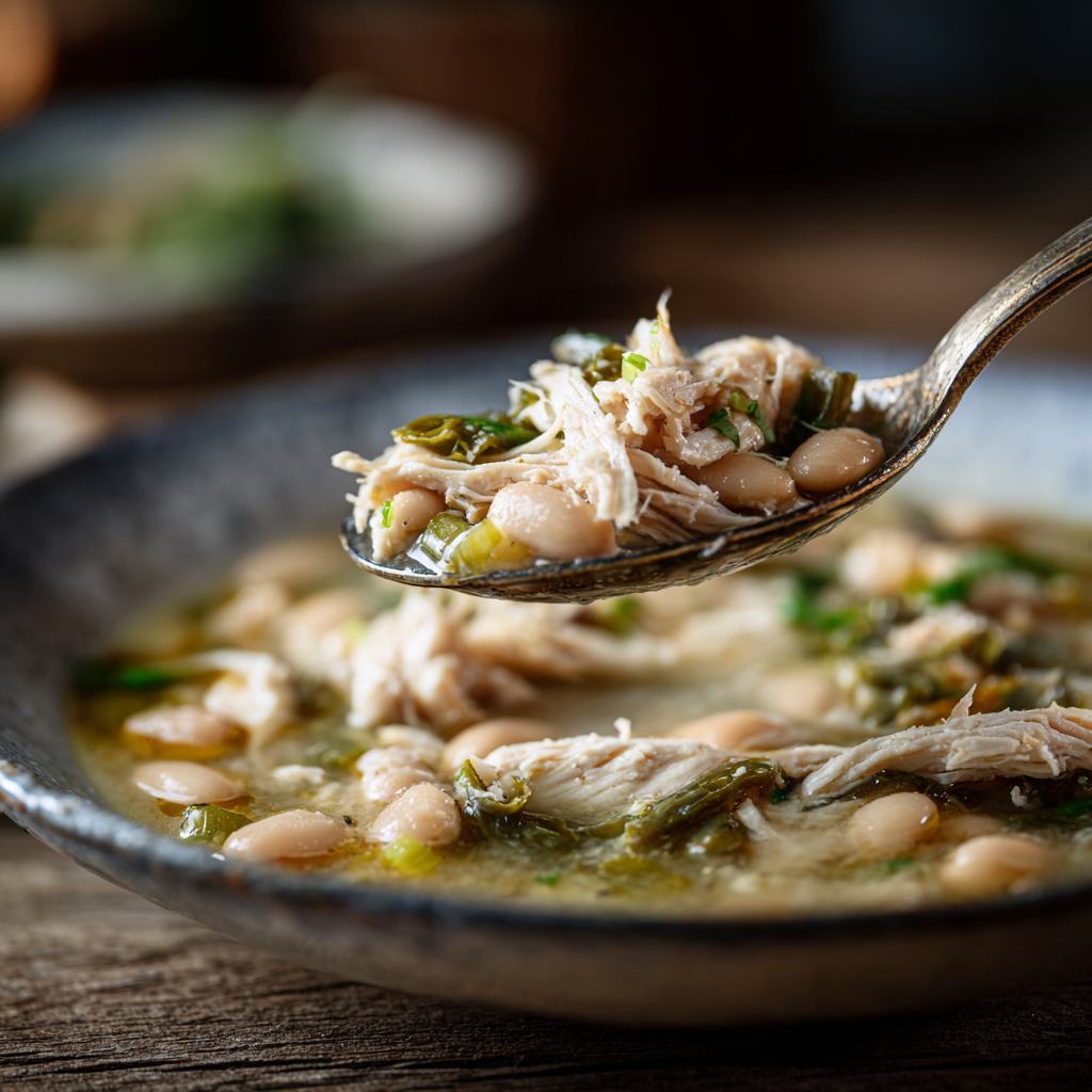 I first made this dish on a cold Sunday evening when I didn’t have much time or energy to cook. I had some leftover rotisserie chicken, a few cans of beans, and a small jar of green chilies — and that’s how this recipe was born! My family loved it so much that it quickly became one of our go-to dinners during winter nights. It’s one of those meals that feels like a hug in a bowl.